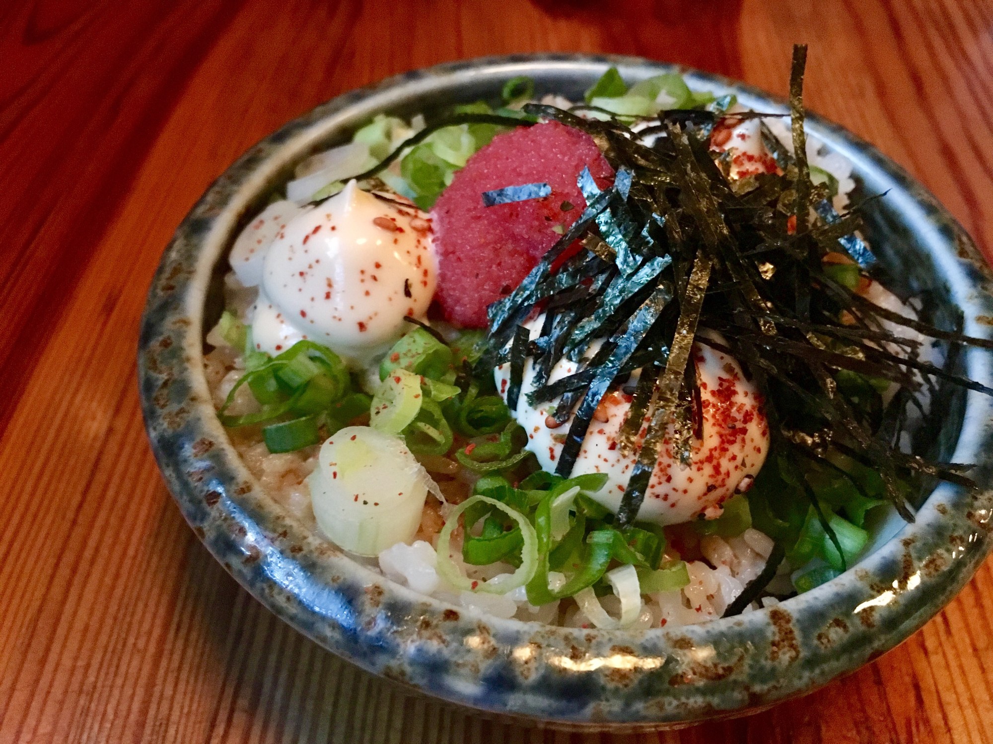 Next we had the mini donburi. If you know me at all, or have read my previous posts, you know there’s a restaurant called Donburi in D.C. that I love. They serve traditional portions of this dish, rice with soy kewpie, a mayo-like sauce, fish roe, seaweed, and green onions. The rice is warm and tasted so good with the cool green onions on top. I ate almost all of this dish, it’s just so comforting!