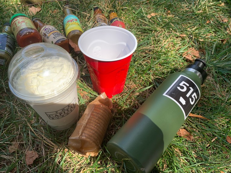 what liquid really helps with the heat? after watching the Dan Levy episode of Hot Ones, we determined that milkshakes were a must. Evan and I got vanilla milkshakes, I brought a half-carton of oat milk, and a full bottle of water. Christine was super-smart and got herself a boba drink with ice cream in it from ShareTea and Emma had a giant water and a soy drink as well. Evan also brought ritz crackers – a smart addition.