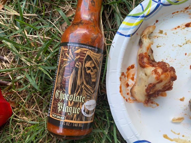 we each tried the sauce in a round and then rated each sauce with a “pain” and a “flavor” score. as you can see, as they got hotter my notes got increasingly incoherent! regardless, huge thanks to Emma, Evan, and Christine for deciding to do this ridiculous activity with me!