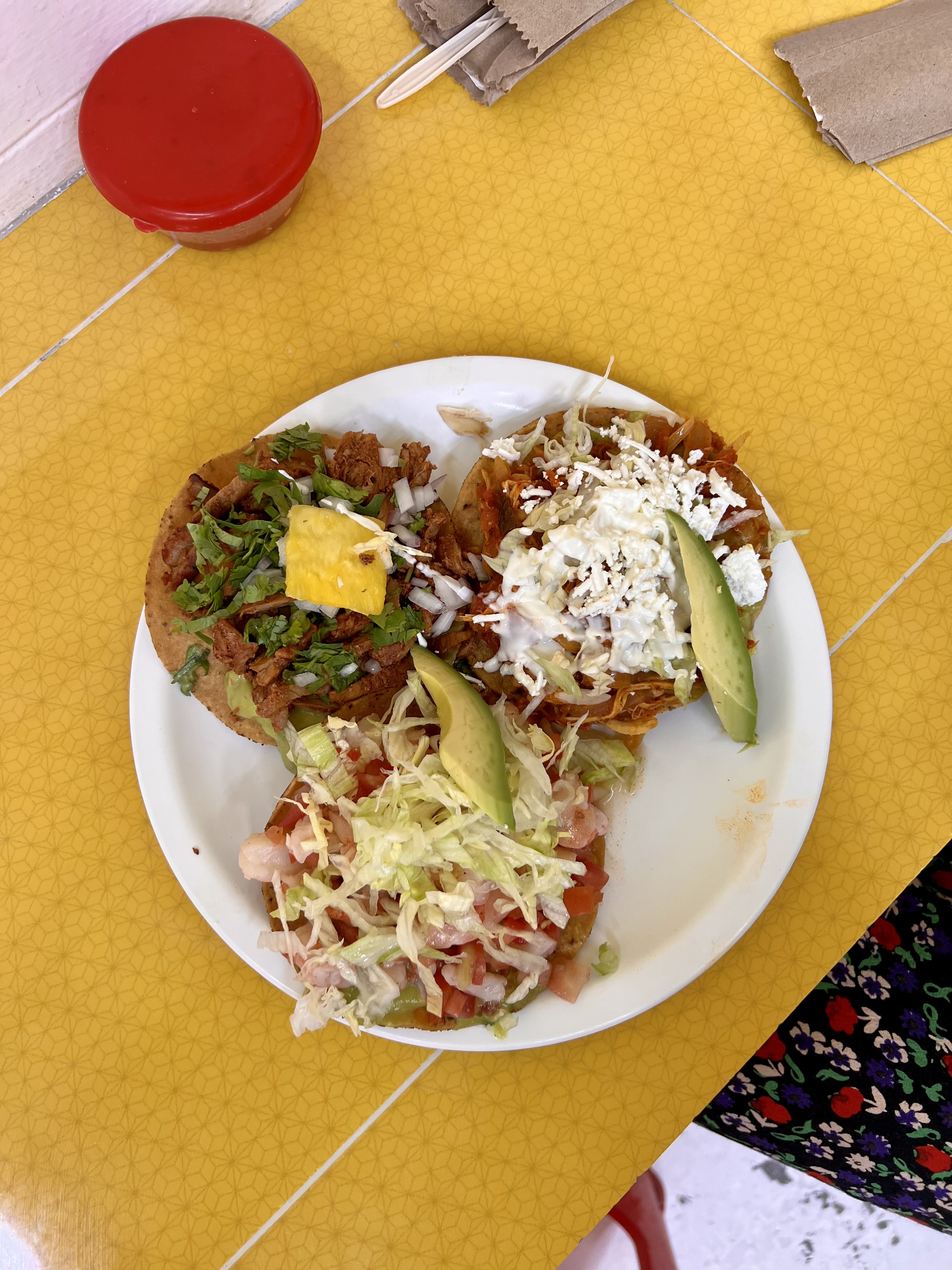tostadas las originales: the perfect post-Frida-Kahlo museum spot. a no-frills tostada stand inside a fruit market, with a menu that offers many types of tostadas and fruit juices. we really liked our tostadas and I got a guava juice that was great too. also cheap!